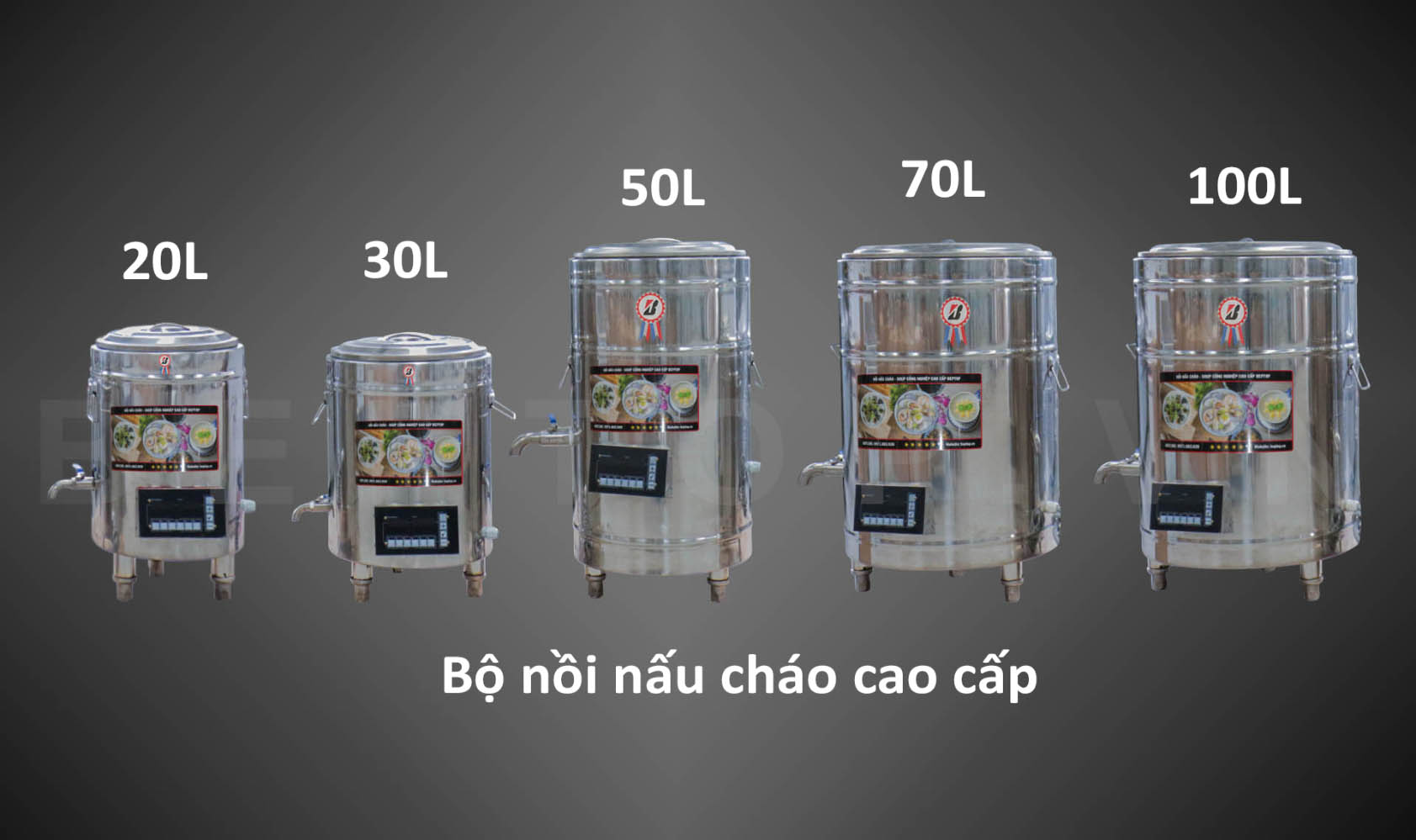 Nồi nấu cháo chạy điện của Beptop được phân loại theo dung tích. Nồi 20L,30L,50L sử dụng 01 mâm nhiệt. Nồi 70L và 100L sử dụng 03 mâm nhiệt.